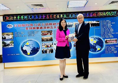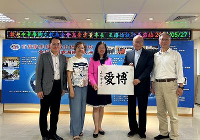 中華學術文教基金會董事長、中華文化藝術總院院長高崇雲講座教授偕同基金會執行長王海倫於27日下午兩點半前往重慶南路一段121號7樓的華僑救國聯合總會拜會新任童惠珍理事長,受到童理事長、龔秘書長及全體工作同仁熱烈的歡迎,高崇雲在總會大堂贈送童理事長書法大師呂仁清所撰「博愛」墨寶一幅以及其最新著作〈龍行天下台灣領航〉新書乙冊。藉此來向童理事長表示祝賀之忱!雙方會談約一小時。