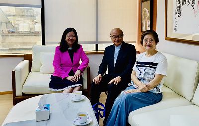 童惠珍理事長在辦公室接待高崇雲總院長伉儷