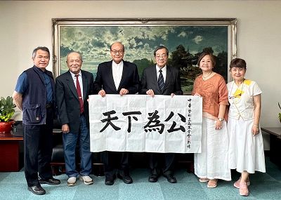 中華學術文教基金會董事長、中華文化藝術總院院長高崇雲講座教授偕同基金會執行長王海倫、院務諮詢委員陳麗雀、高駿華、呂仁清、周龍修等著名藝術家一行六人於6月12日上午11時前往考試院拜會黃院長榮村,受到考試院同仁熱烈的歡迎,高崇雲表示:此次專訪主要是答謝黃院長在去年9月28日教師節特別撥冗出席中華文化藝術總院頒證典禮,除頒證外並致詞嘉勉藝術家乙事,因此率領幾位藝術界代表參訪考試院向黃院長表示最高敬意!黃院長是一位滿懷愛心的政壇領袖,他不僅全力推動傳統文化藝術,而且闡揚全民教育的理念不遺餘力,深值各界人士的肯定與讚揚。