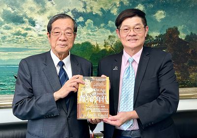 黃院長贈送著作予周龍修博士